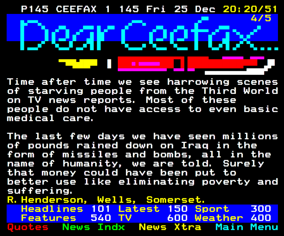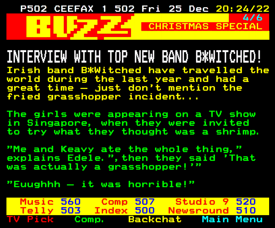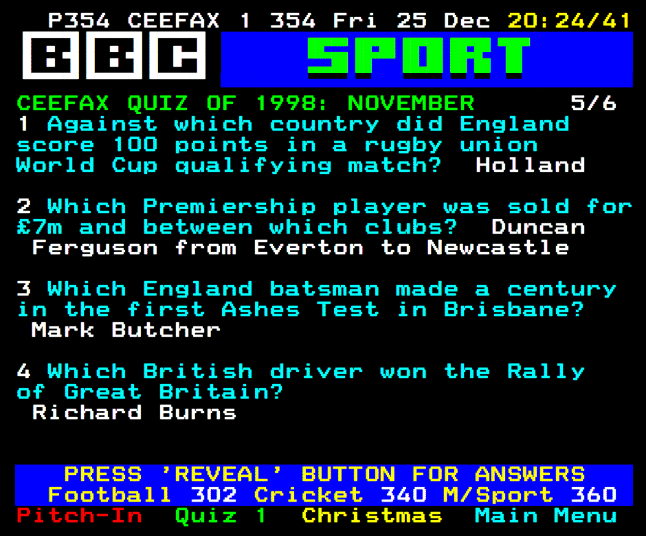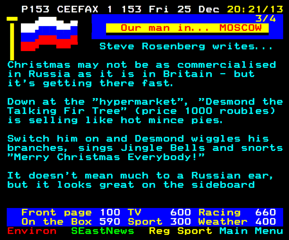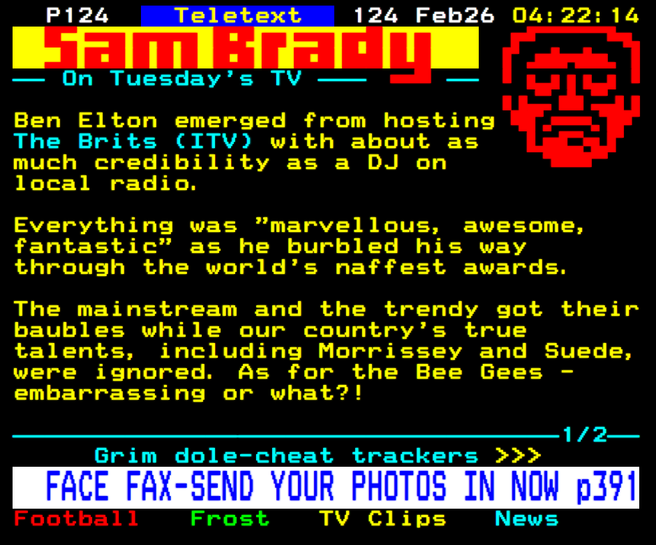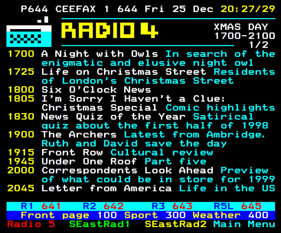 Originally produced in 1997, the Perfect Day film was put together to celebrate the diverse range of music produced by the BBC under their licence fee charter. A whole host of musical personalities appeared for only a minimal fee to take turns covering Lou Reed's song. The film was so popular that is resulted in a charity release for Children In Need, and continued to be shown for a considerable time afterwards - this slightly wintery version airing coming in during Christmas 1998. Several of those featured have passed away in the years since, including Lou Reed himself, however to this day the film remains one of the corporation's better remembered short pieces.