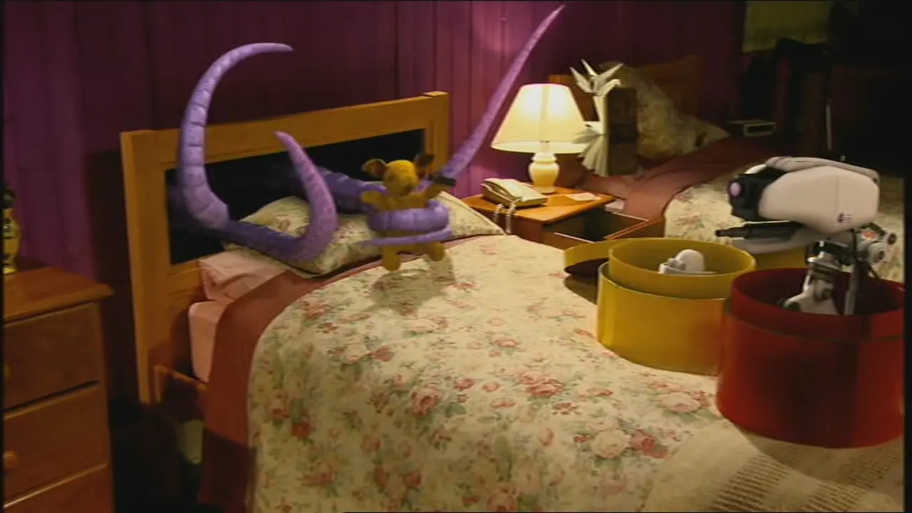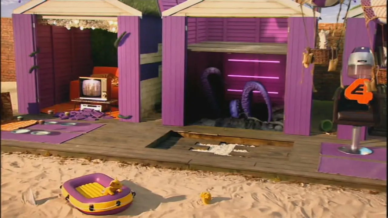 This surreal ident package was first introduced in 2007, lasting through until 2013. In most cases, a recurring teddy pig style character meets the blunt end of various objects and scenarios. In this sequence, a bedroom is taken over by purple tentacles and overflowing slime. I have to pay good money for those sorts of images online you know!