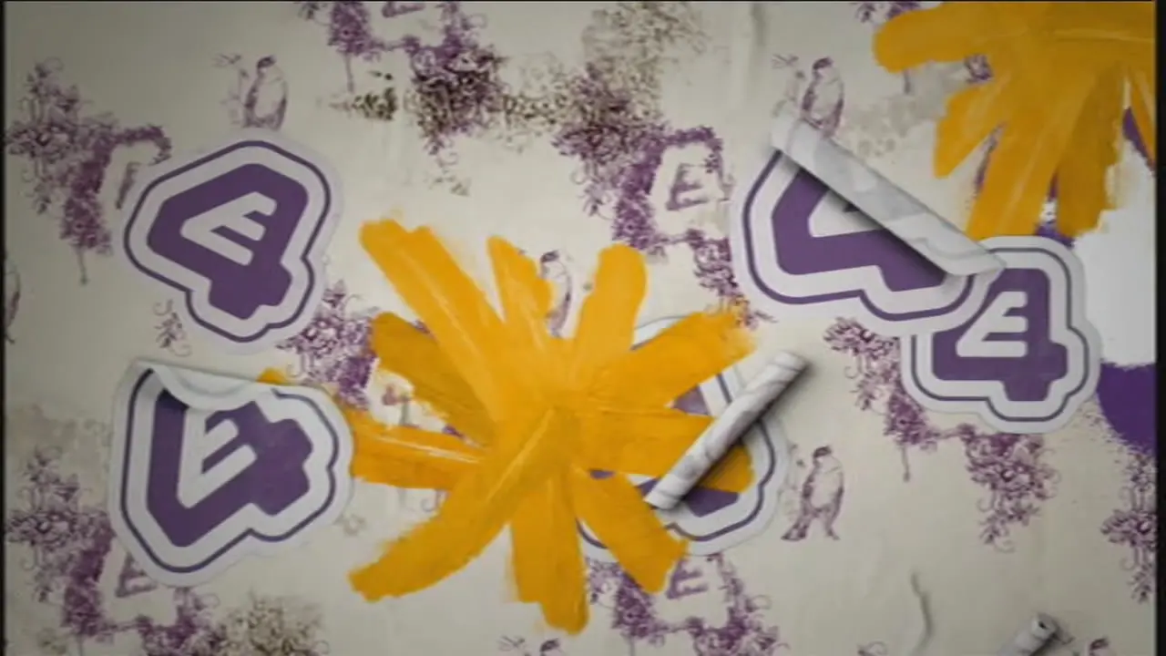 The main idents for E4 don't change much over the years. So as an ingenious way to keep the whole package fresh, every year Channel 4 run a competition for 'e-stings'. A series of break bumpers which are put together by members of the public which convey the E4 brand in wacky and creative ways, with a new competition generally held every 2 years to keep the set refreshed. In this one from 2009, a paper cutout rabbit and frog feature.