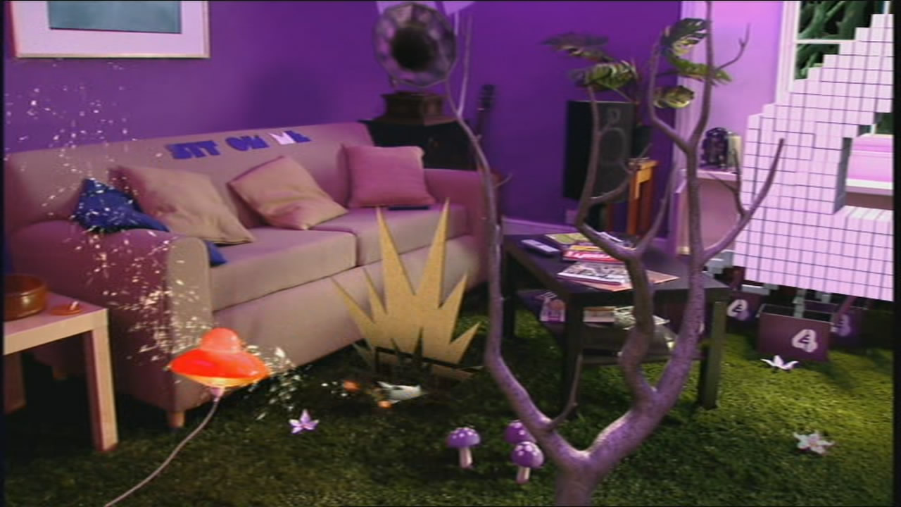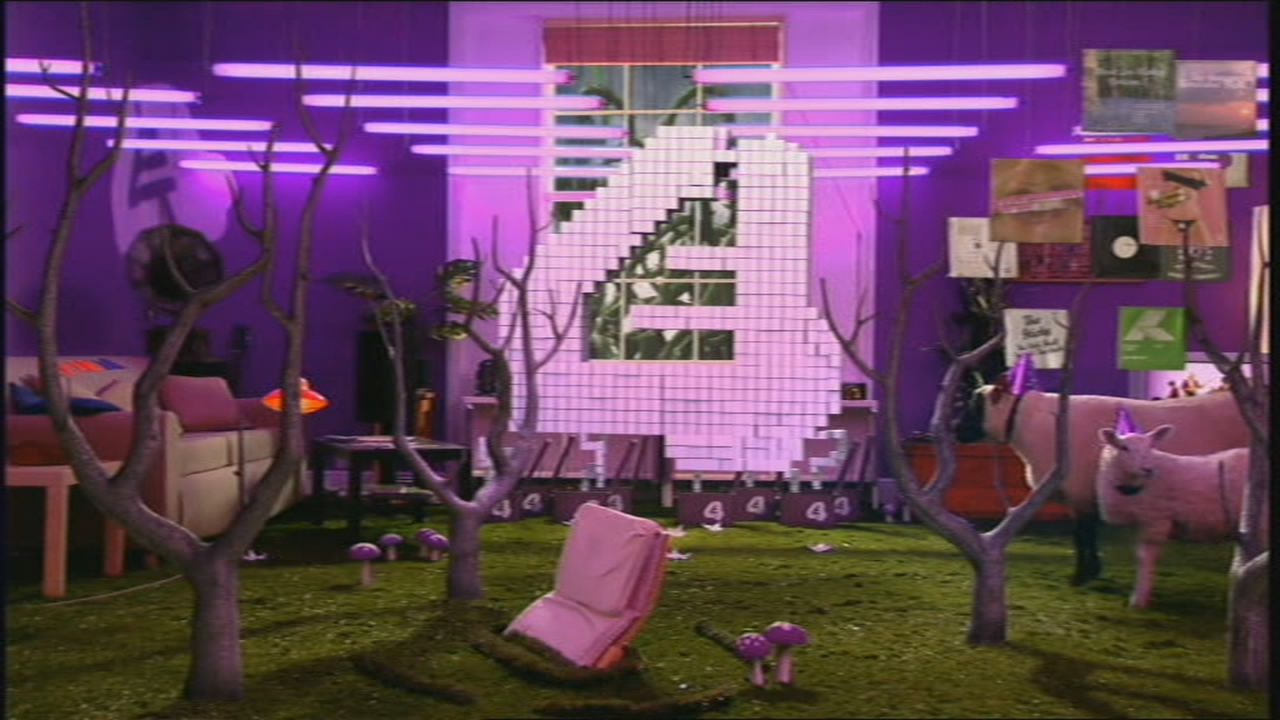 This surreal ident package was first introduced in 2007, lasting through until 2013. In most cases, a recurring teddy pig style character meets the blunt end of various objects and scenarios. In this sequence, a bedroom is taken over by purple tentacles and overflowing slime. I have to pay good money for those sorts of images online you know!
