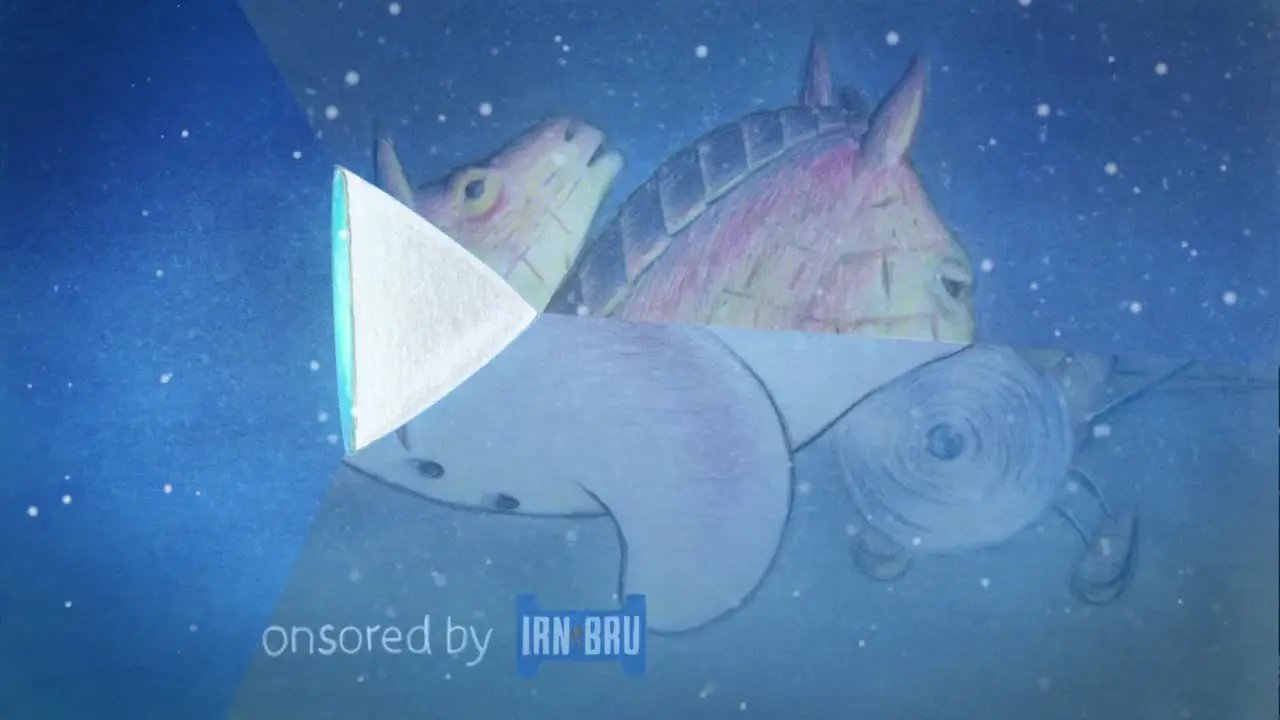 For Christmas 2022, STV brought back out most of the same set of idents that had been running for the past few years. The Irn Bru Sponsorship idea also made a return, but refreshed. This time the ident had been updated with entirely animated video clips, as well as replacing the STV triangle device and endboard with one following the same hand-drawn style as the rest of the Snowman animation. And thankfully not a 'SNOWMAN ENTERPRISES OWN THIS' bit of text anywhere to be seen!