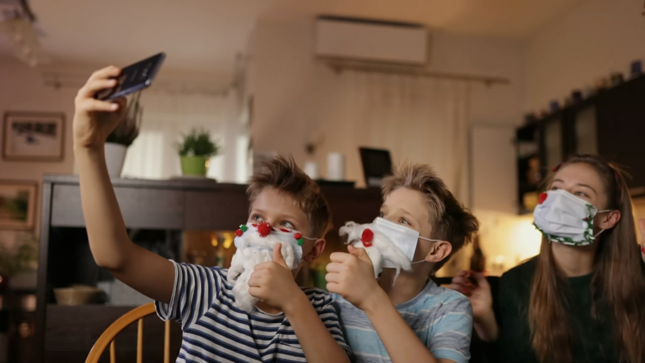 On 1st December 2020, STV launched their refreshed festive package for the year. The idents were very similar to that of previous years, reusing a lot of the same footage. However all had been re-edited to some degree as a result of the COVID-19 situation, removing scenes like Christmas Markets, and instead adding in features like video calling to reflect Christmas 2020. In this one, a person opens a present via video conferencing, before mixing in previously used shots of families with dogs and fireworks.
