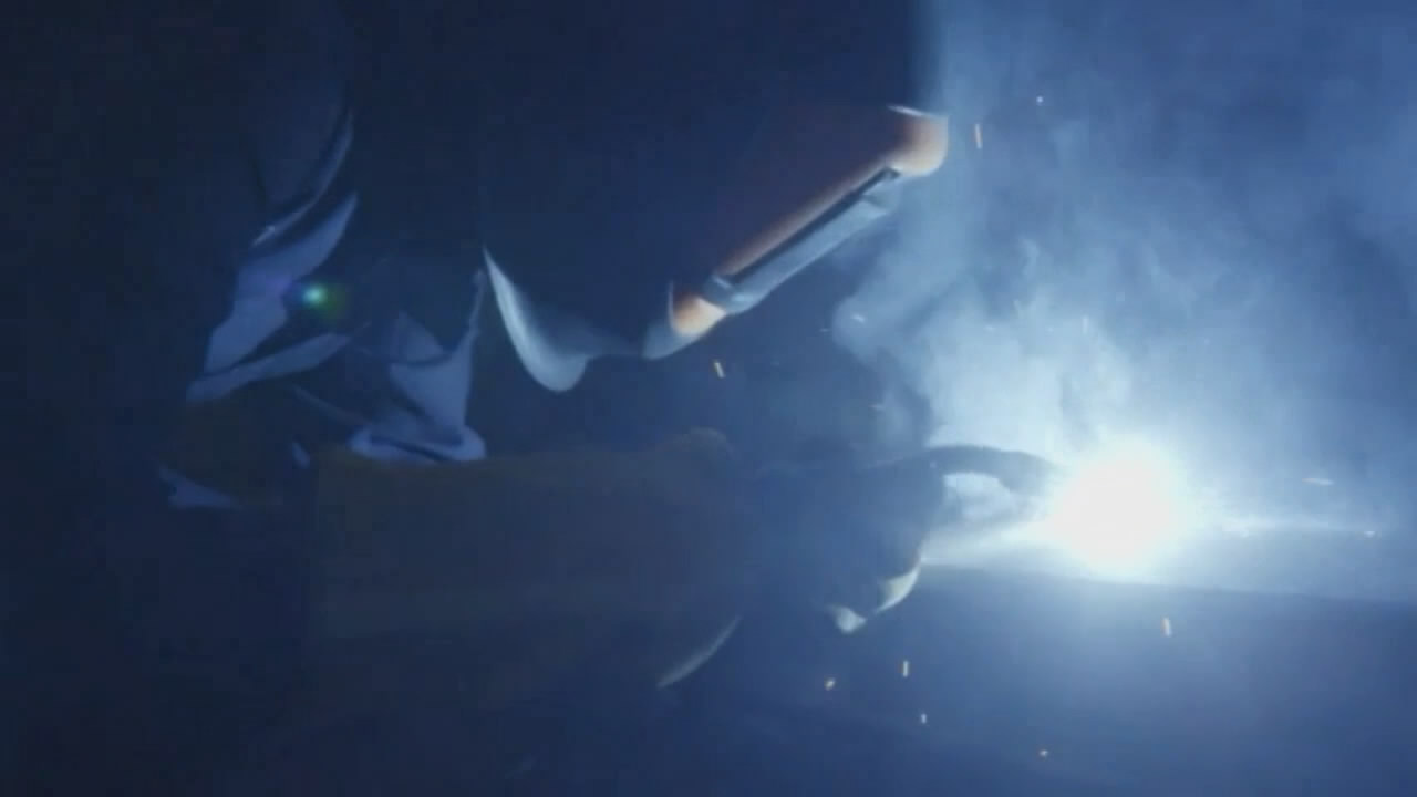 Idents for STV involve various scenes cut together with the triangular device, before it settles as the STV logo at the end. All of them come in various lengths, some with obvious connections between the footage, and others with less obvious connections. Welding, sheep and swimming appear in this one. Three things you always imagine going together!