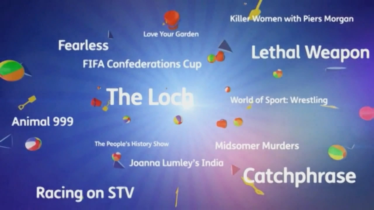 The ECP style for STV is very similar to that of the main ITV network, which makes sense given they're cutting over an end credits already designed for that template of promotion. Once again it allows for cross promotion of channels, usually used to effect to promote things coming up on STV2 as well.