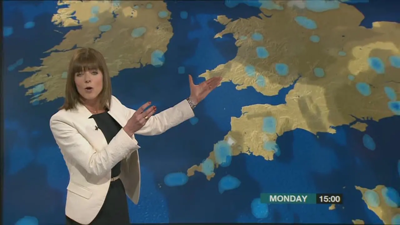In 2005, the traditional weather symbols were dropped from the BBC in favour of more realistic maps designed to show weather more accurately. The newly introduced graphics remained in use with small tweaks for the next decade, right through until 2013 where this clip dates from. Shown shortly before 1pm on 18/3/2013, Stav Danaos presents the last weather bulletin broadcast on the news channel to come from Television Centre before their move to New Broadcasting House alongside the main news team.